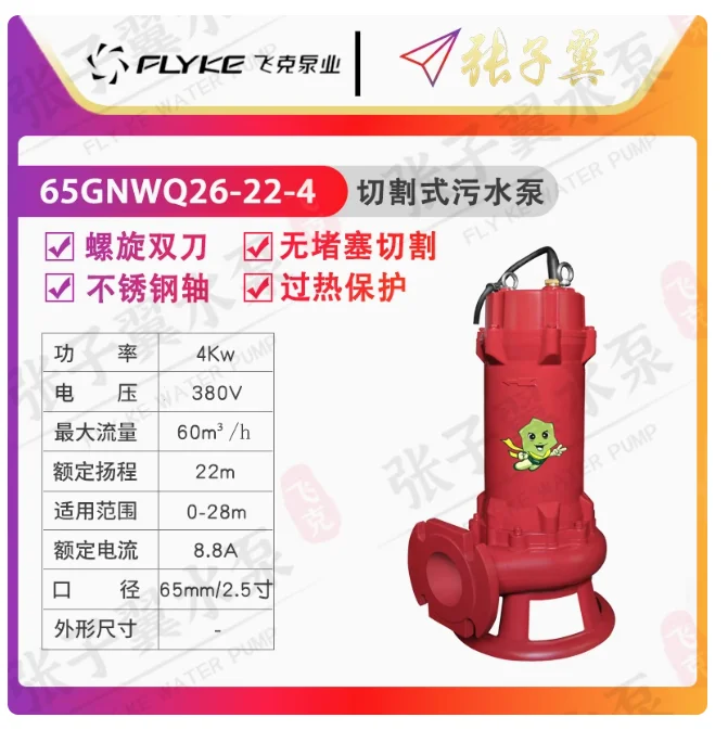 FLYKE GNWQ cutting sewage submersible pump 80GNWQ43-13-3 65GNWQ26-22-4 80GNWQ45-17-4 100GNWQ65-12-4 80GNWQ45-20-5.5