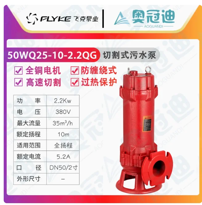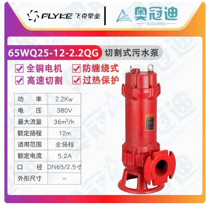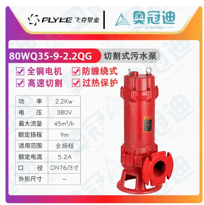 FLYKE WQ-OG cutting sewage submersible pump 50WQ25-10-2.2QG 65WQ25-12-2.2QG 80WQ35-9-2.2QG