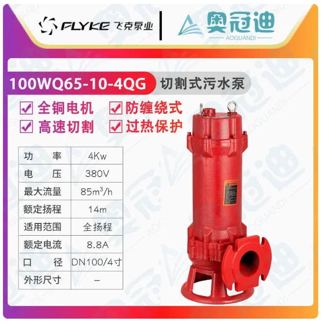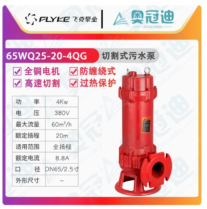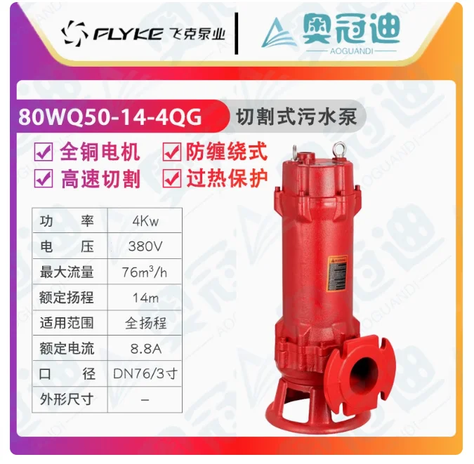 FLYKE WQ-OG cutting sewage submersible pump 65WQ25-20-4QG 80WQ50-14-4QG 100WQ65-10-4QG